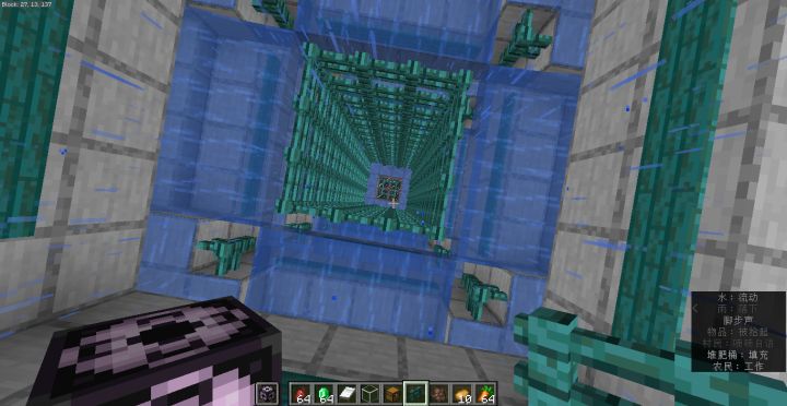 只玩了一个多小时,连一半都没弄好(不过传输和投掷部分做好了剩下的就快很多了)目前的高度是5个(1耕土+村民身高+2格水道运输),算上封顶(与土豆/胡萝卜农场做在一起)和底部收集/回收,大概六七格。好久没玩水道相关的红石器件了,很多东西试了好几次才试出来#minecraft #有点东西但不多