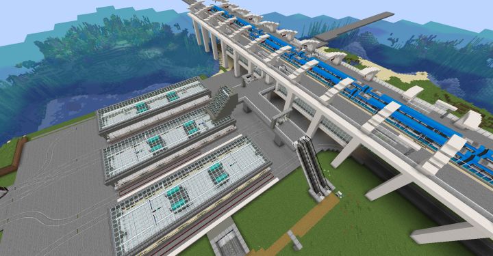 暖水海岸站是我的轨道交通中暂时的最大换乘站,站台为高架侧式站台+地面3个岛式站台拼合而成。但是换乘通道过于狭窄(瞎搞).为每个站台提供了明确的换乘路线(有了感觉跟没有一样)通岸线站厅(空荡荡)通岸线站台望远(地面岛式站台视角(开小点视距,不然电脑撑不住)最后是地图视角了(不咋好看)这个地图本来是测试地图,后来一不小心又修了25+站点。所以很多地方看起来有点怪(比如之前是平坦世界结果被