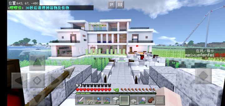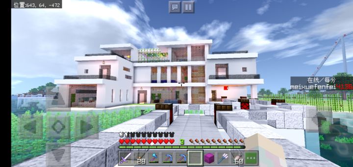 五个月前我在服务器建的房子,后来没玩又换档了,当时只截了外景,顺便发个现在服务器的一个景(最后一张)
