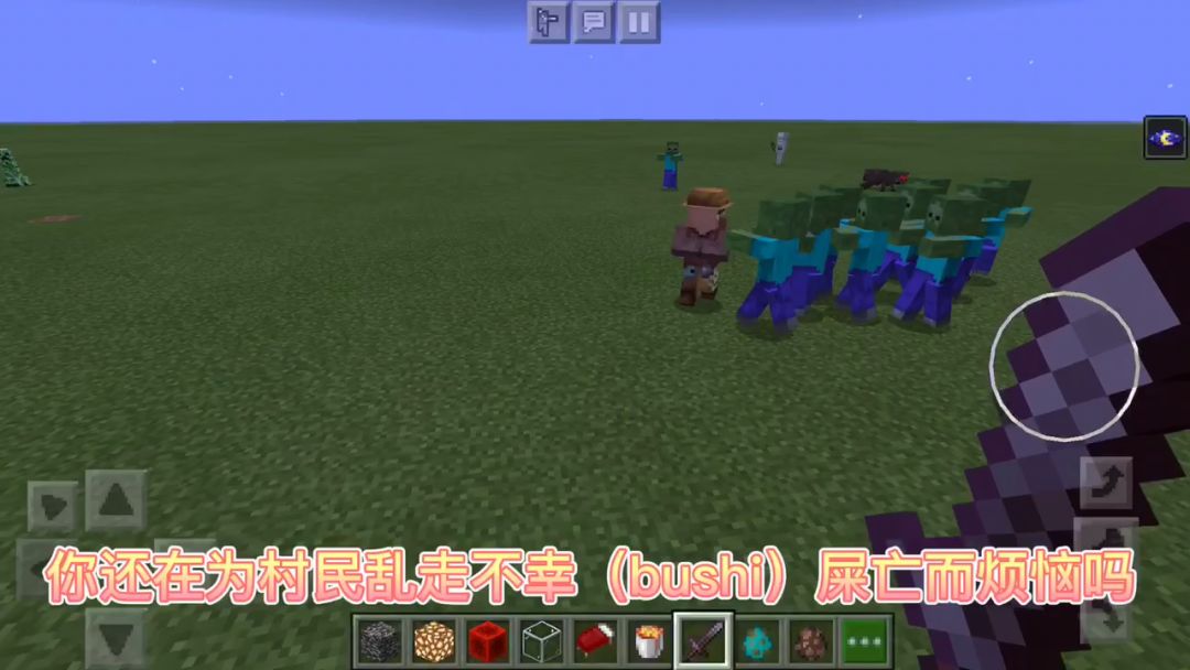 我估计我以后又要有一个阴影了。事情是这样的:今天好不容易找到一个村庄,想找些好的,结果就一个农民外全是无职业村民,我就寻思反正没好东西,然后决定屠村。当时屠了几个村民加一个铁傀儡后就已经傍晚了,准备进屋屠。反正我是放过那个农民(虽说太奸了,一个绿宝石换一面包)。正好是一个村民在床上睡觉时,右键连点,把村民叫醒后,又点到了床——刷新重生点,重蹈覆辙,犯了和玩手机版时一样的错。随后,我就摧毁床准
