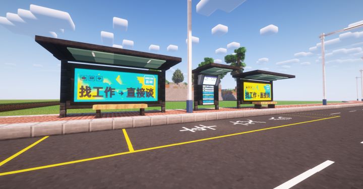 仿现实公交站的设计,虽说目前暂时等不来公交车,但还是建出来试试效果