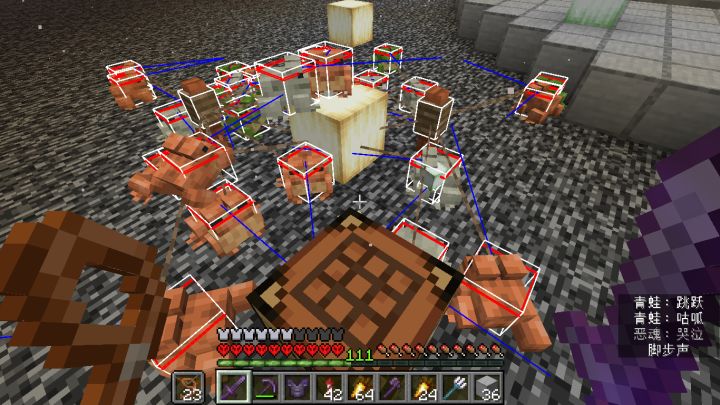 运青蛙的时候在下界也就多待了一会,回到主世界差点寄好消息:铁链卡位刚刚好,青蛙能吃到小岩浆怪,而小岩浆怪能被水冲到铁链前,铁链限位同时也避免因岩浆怪过多导致青蛙被挤死坏消息:只运来了21只青蛙,还差51只