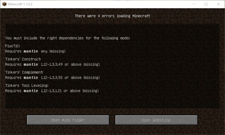错误示范:安装模组的时候不要忘记检查前置模组,否则你将看见如图所示的报错提示