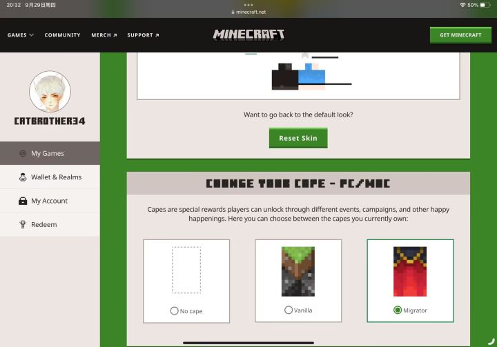 O酱已向基岩版玩家发放vanilla披风 但应该是几天甚至几周前的事了