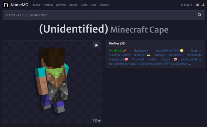 披风开始发放,据 namemc 统计已有超 1000 人正在使用