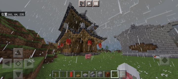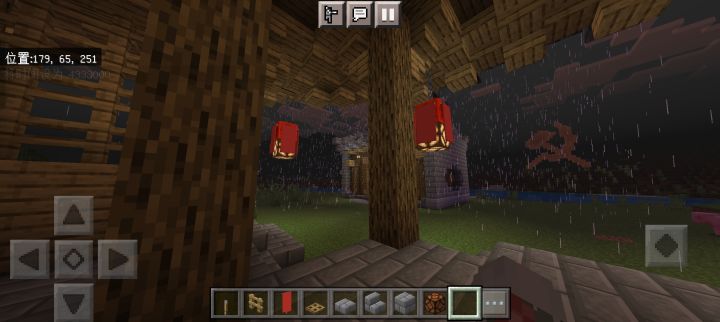 开局就是面前的樱花林,往左走就有一个村子,教堂对面还有一个小樱花群系和一个前哨站,往右走是热带草原,一直往右走你会看到一片樱花群系,再往右走有一片更大的樱花群系,还有一个繁花村庄,出生点一直往前走还有一个被雪山包围的山谷,适合佛系的朋友们玩,我也就大致看了一下周围的地形,下界还没去过,这个种子非常适合生存,平原也多