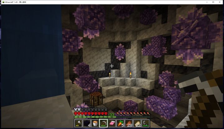 紫水晶母岩真的好多可惜带不回家,紫水晶母岩主要是用来繁殖紫水晶,推动或者精准采集都会被破坏且不掉落任何物品,紫水晶块装饰还不错哦