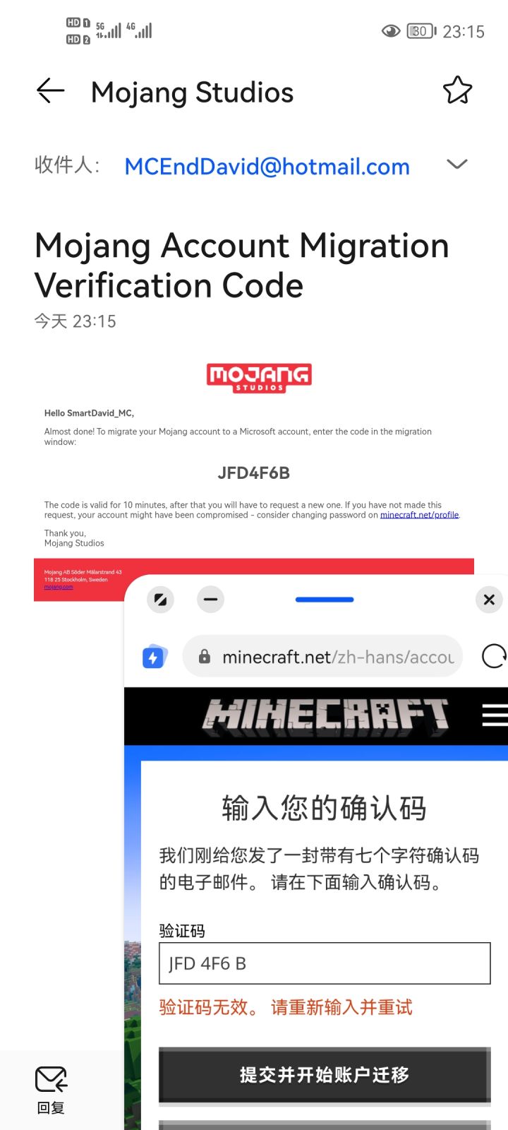 我直接疑惑,重新发送邮件了好几次输入他提供的码都没用