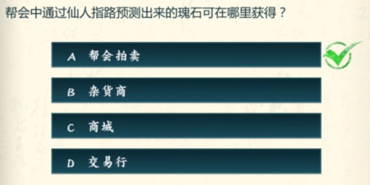 风起稻香终于来了,新版本的第一篇攻略犹豫再三,还是以给80%的玩家想看为出发点,整理了这篇科举题库答案(顺便揪出了帮内数位剑三云玩家hhh)后面每天都会持续更新题库内容,最下有一图流版本,记得保存留用!如果在使用过程中遇到未收录的新题,麻烦在评论中分享一下~搬运的也请写明原作者~AB白帝城秘境进度刷新时间为?--每周一和周五帮会中通过仙人指路预测出来的瑰石可在哪里获得?--帮会拍卖“八