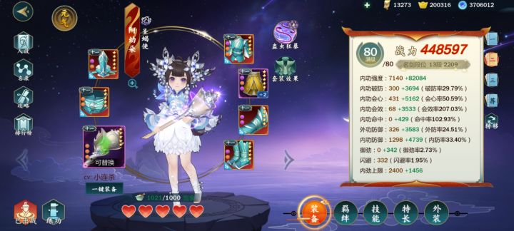 陈月PVE属性推荐作者ID:海誓山盟 工藤跳一一:配装推荐PVE配装:1:鬼工+衔赤(最优)4鬼工+2衔赤是目前本人认为的最优搭配,攻防兼备。挑战容易乱仇恨,boss可能平A一下18W。穿鬼工加吃血量菜有20W左右的血量,即使乱仇恨,也不至于一下毙命,再结合陈月优秀的吸血能力和治疗能力,挑战三小基本不会死。鬼工赌强度、会心、会效、破防词条都可以,我自己是赌了一个内劲回复,因为打挑战我觉得