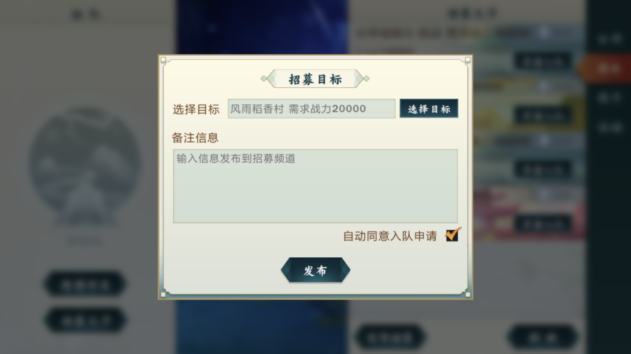 请教一下组队的问题,发布招募任务写备注信息就会回到招募大厅。