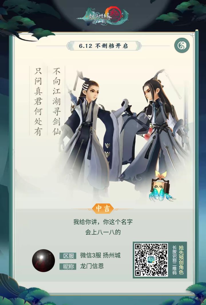 https://jx3.qq.com/act/a20190128bookingm/index_wqm.htm?ADTAG=&adtag=wxshare&sInviteCode=D2AACM85微信区的大佬们,还没有预约的抓紧时间点击链接预约了