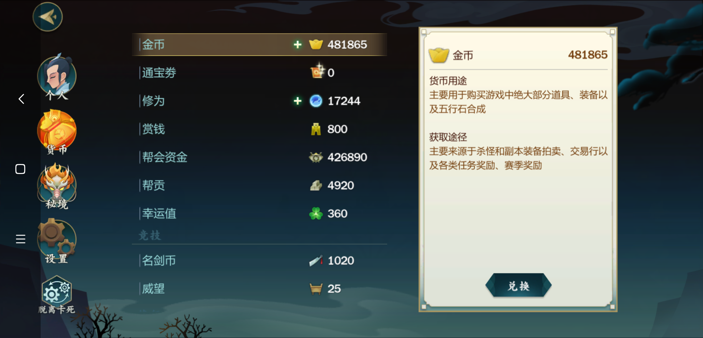 因为我打定主意只玩一个角色,所以直接把攒了好多的经验药、修炼药通通上架交易行卖掉了。一下子多了好多金币。现在该想想怎么花好。是继续攒够90万去买9折的1万个强化石还是留着白帝买晶石🤔🤔
