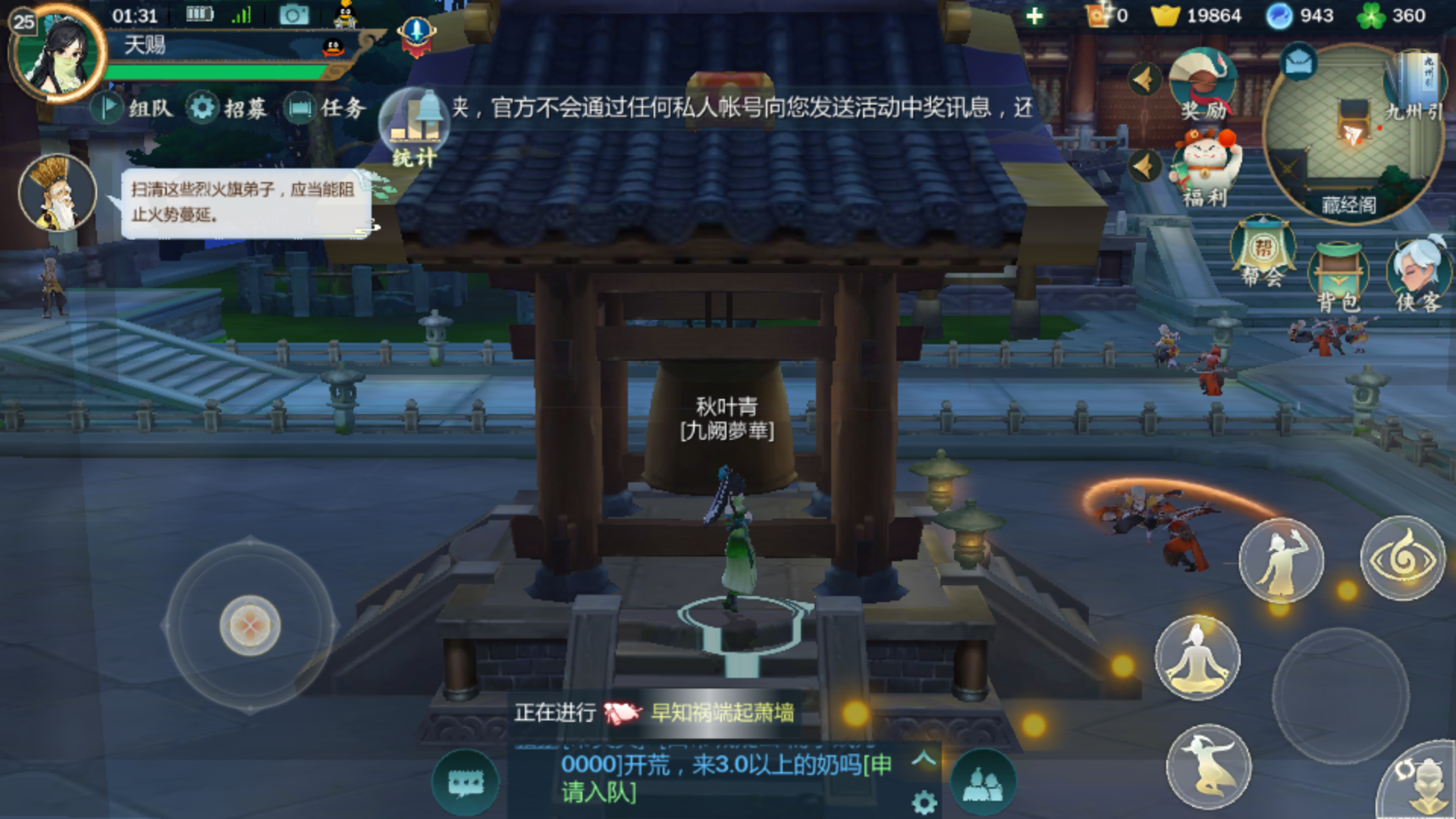 正面有一堵墙,在下面跳还老被挡住,少林的