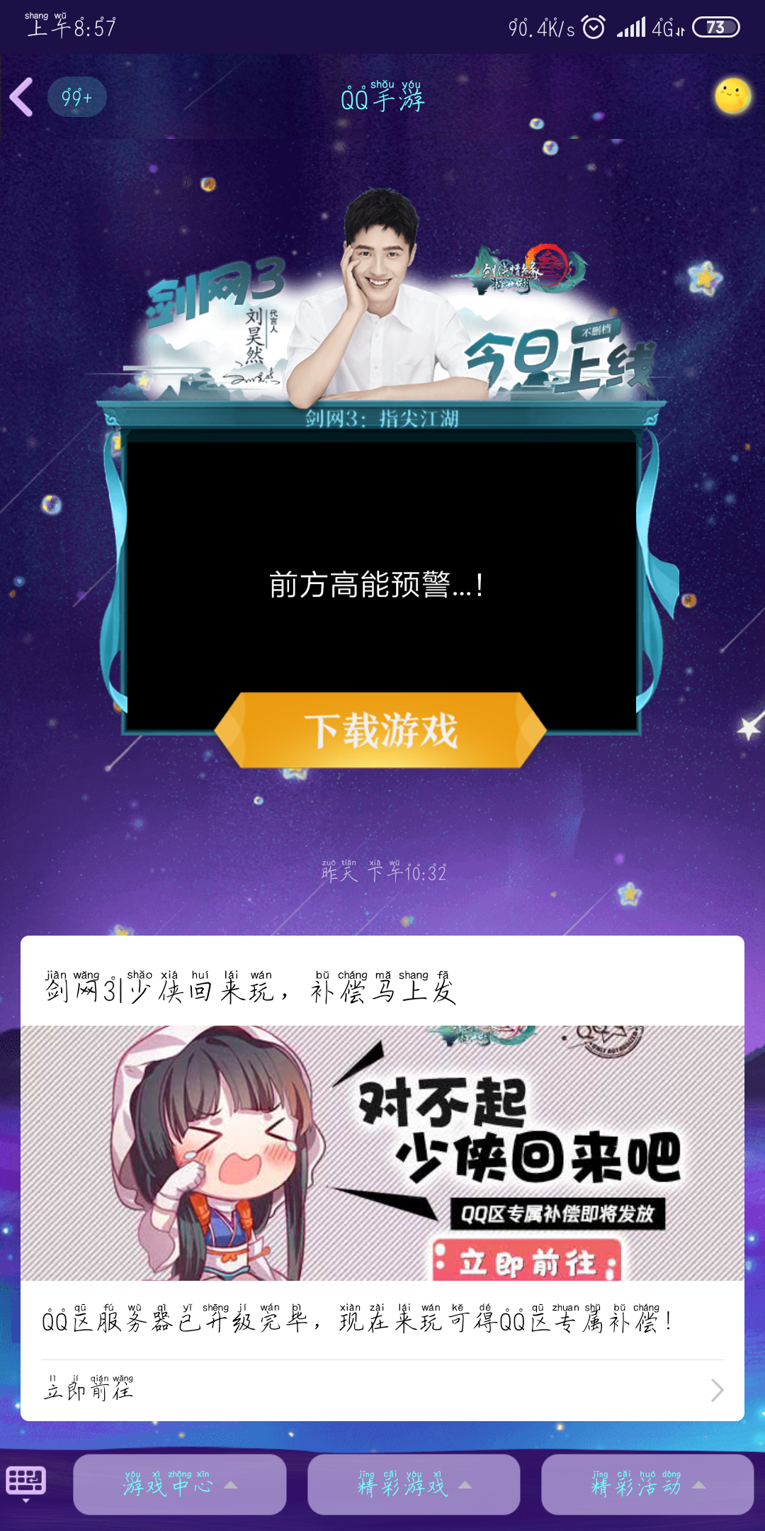 史诗级手游,剑网三:指尖江湖上线了,由于游戏太过火爆,故事太过于吸引人,造成了服务器一度瘫痪,在此,开发组对广大玩家表示歉意剑网三采取了最新的2.5d横版格斗,故事人物栩栩如生,场景采用了大师级别的画面,让玩家可以在大世界上可以自由翱翔,避免了传统手游的约束,在故事情节上加入了cg动画,可以使玩家在做剧情的同时,能欣赏到精彩的动画,使玩家在剑网三的剧情里,可以抛弃传统手游在剧情升级路上的枯燥无味