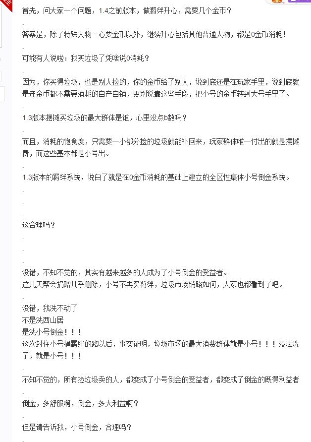 最近大家对烹饪花金的讨论都比较多,一直觉得这个很明显的是打击工作室的做法,搬运了一个贴吧贴,觉得讲的蛮对的……