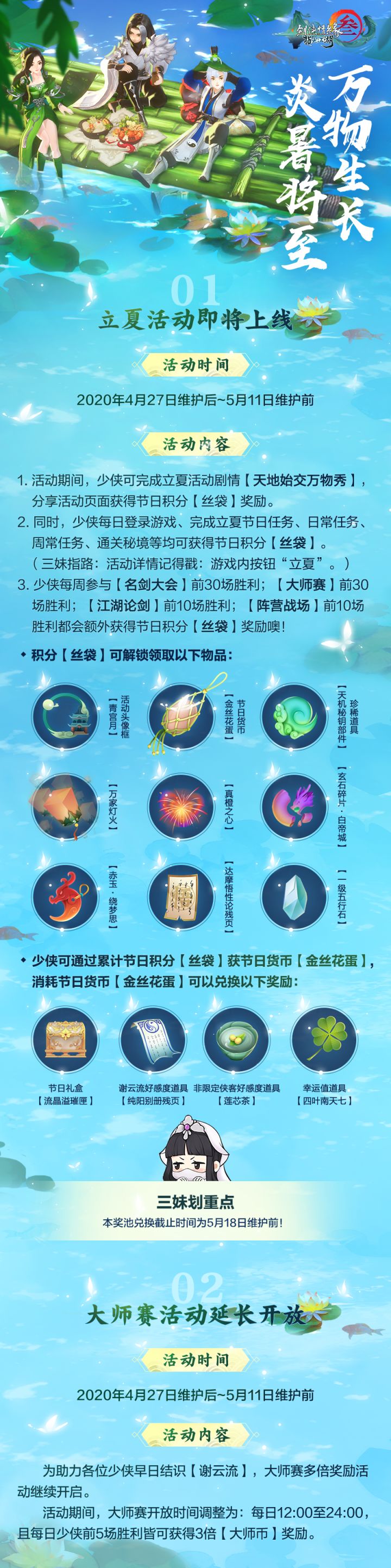 万物生长,炎暑将至!《剑网3指尖江湖》 立夏活动即将开启啦!