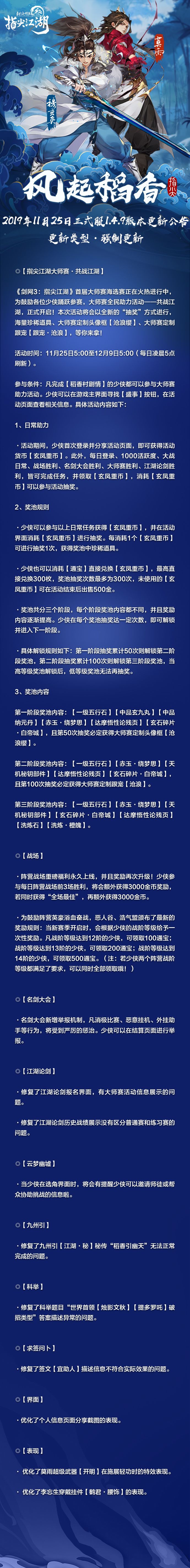 尊敬的各位少侠,为了给少侠提供更好的游戏体验,我们已于【12月9日上午3:00-9:00 】进行停服更新。划重点:大师赛竞猜、12.12盛典活动明日开启!