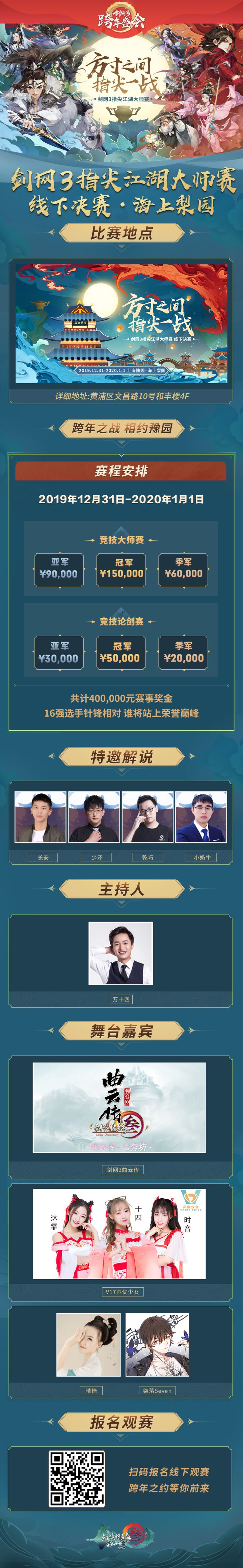 方寸之间,指尖一战! 线下总决赛12月31日-1月1日相约上海·海上梨园!战队间强势碰撞,高手中针锋相对,首个大师赛冠军即将决出,官方直播间将进行全程直播!观赛报名现已开启,戳:填写游戏内问卷,跨年之战诚邀少侠前来!