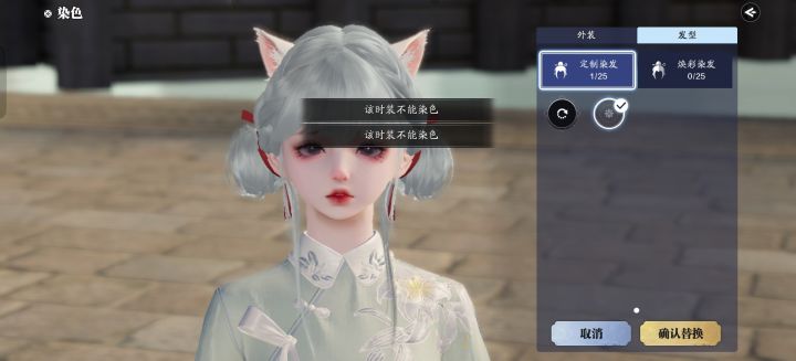用冰凌染染色的时候染色界面显示能染,染完之后替换发色时提示该时装不能染色。