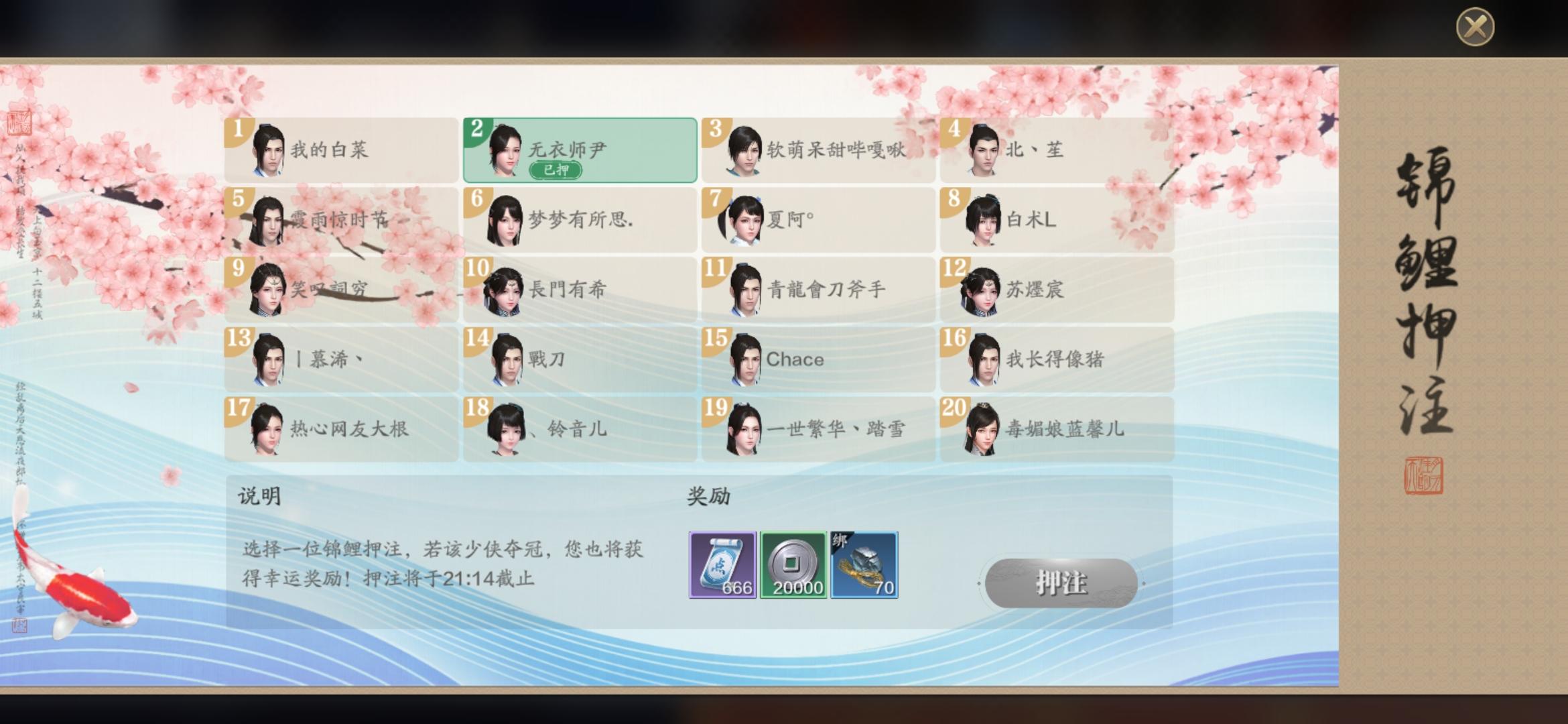 从本次剑荡看得出,其实玩家们比较热衷投注赢奖励,剑荡实力本身和帮战实际差距水平 差不多,所以也有一定随机性。跨服帮战竞猜, 押注500-2000银两,有保底收益,和上限,规则跟剑荡差不多,收益变为银两