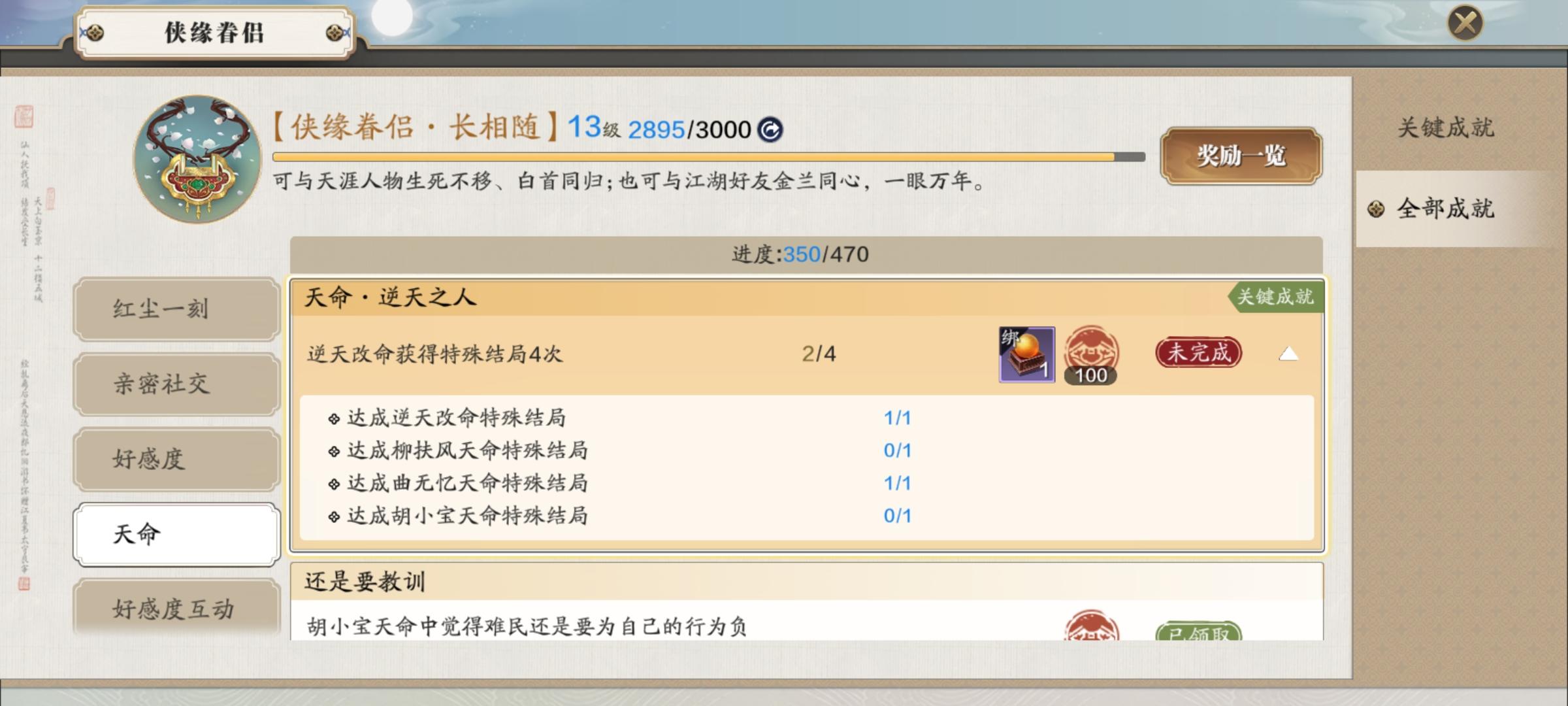 明明已经完成胡小宝天命了,成就里不显示完成?