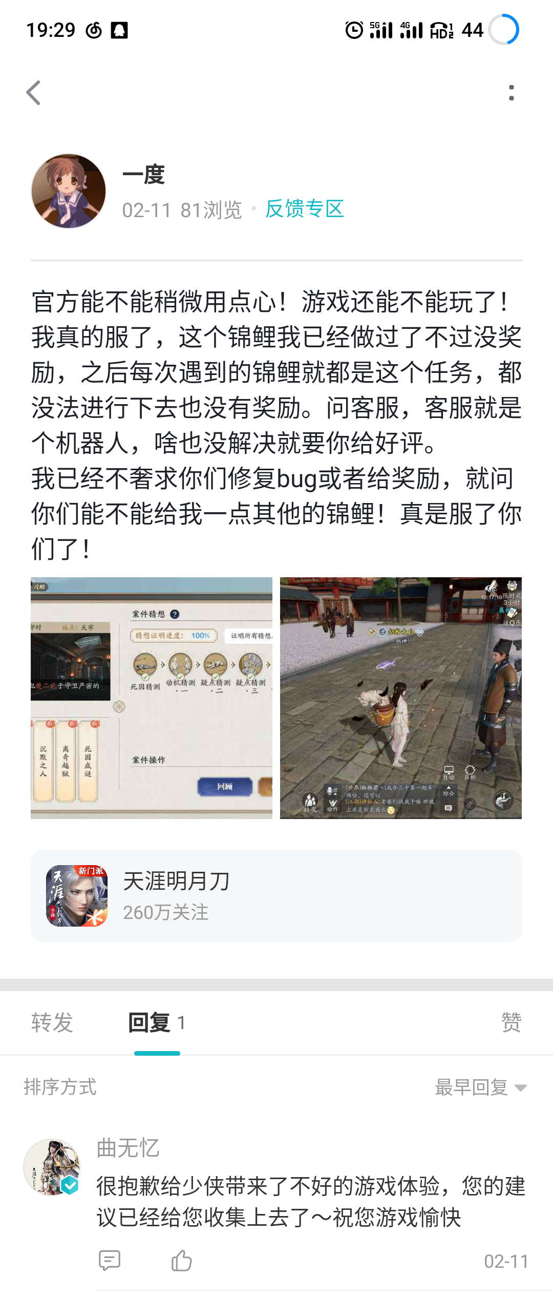 呵,上次回复说反馈情况。上次的奇遇之后的第一个奇遇,依旧是这个做不了也没奖励的奇遇。你们真够敷衍的