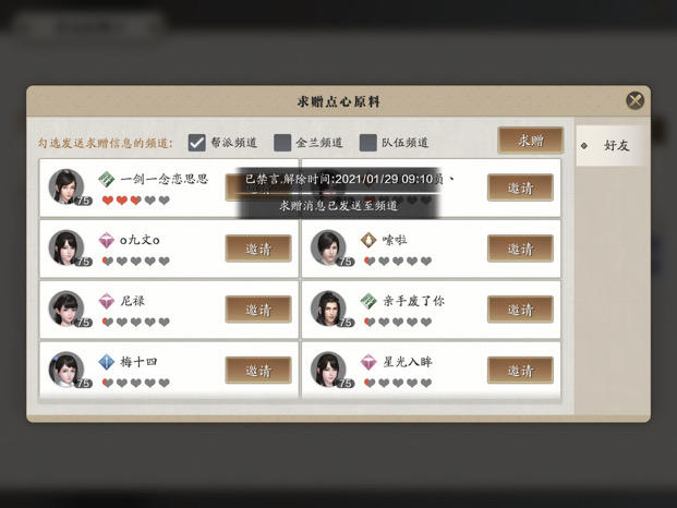 禁言的时候可以帮派答题,茶话会的求赠居然发不出去,恶心人也不带这样的!