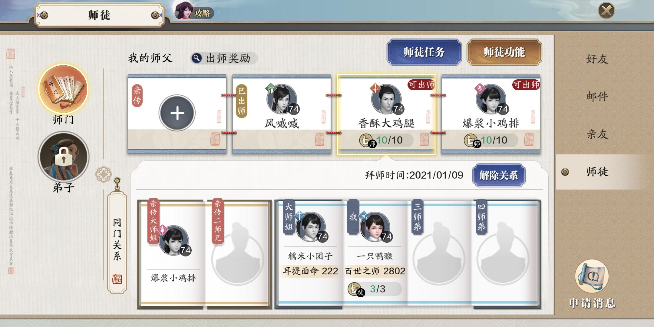 做完第一个之后剩下两个师傅怎么出师,我这也没有出师任务了,但是显示可以出师,现在不能收徒…该怎么办