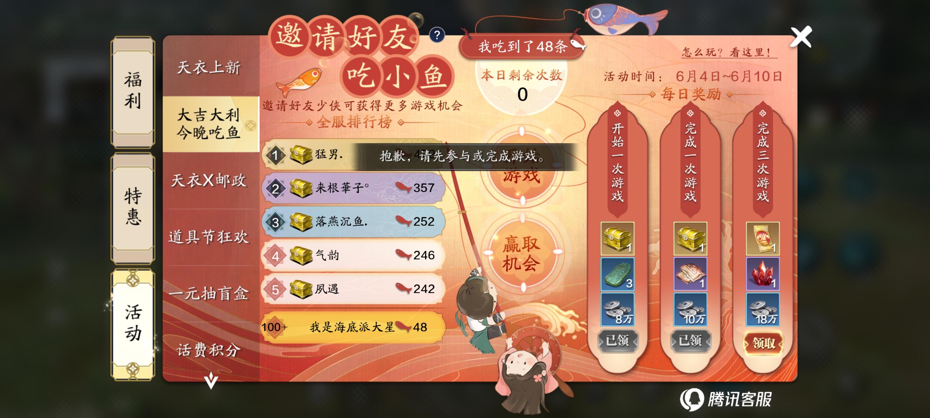 才出的活动,两天了,我玩了三次怎么最后那个领不到