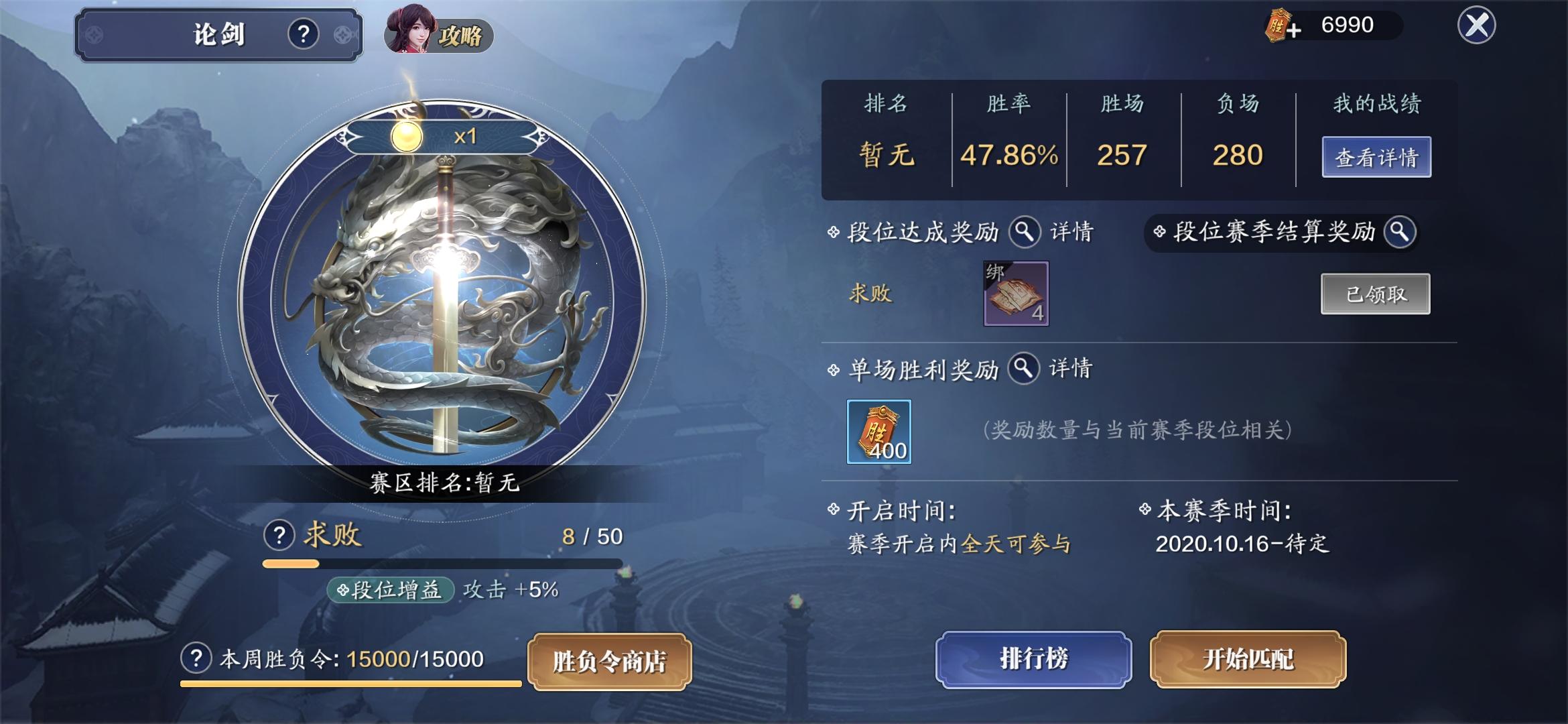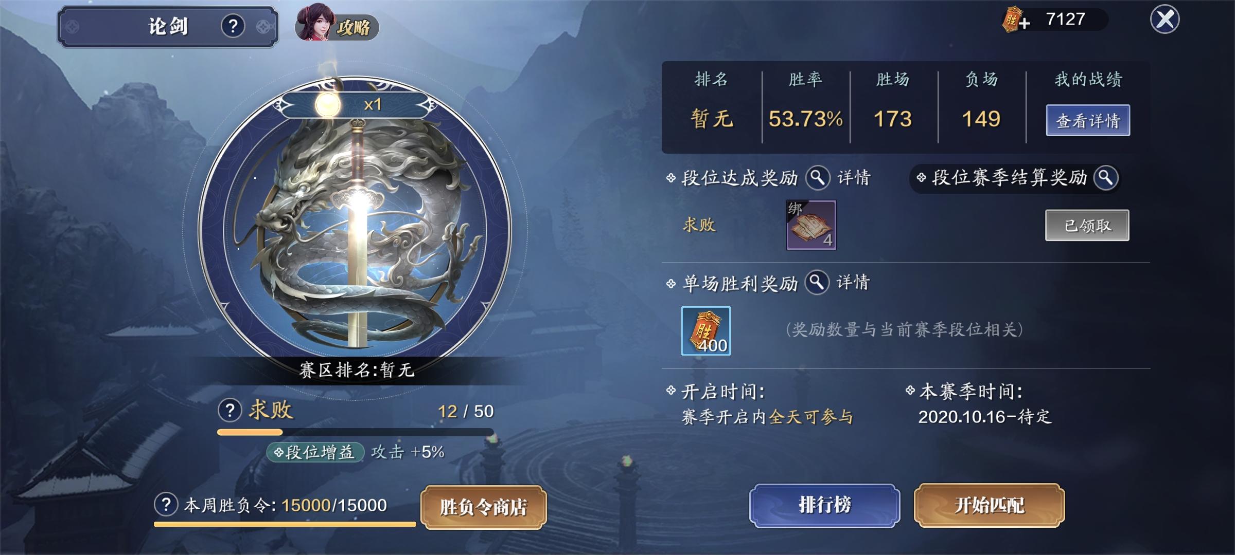 开心 !!!虽然菜是菜了点……虽然都说求败有手就行,但是真正一局一局打过来的朋友都知道这其中的艰辛(特别是神威)其实一开始的定位是白虹,那时候胜率也挺好,可看着游戏中好友的段位蹭蹭的往上涨,就开始有点不甘心了,然后有定位了武痴……后来一次逛贴吧的时候看见有人说,武字段上分特别容易(因为输的话扣分少,赢的话加分多)心又开始痒了……去试了一下……居然是真的……又不甘心了……然后……定位求败?……