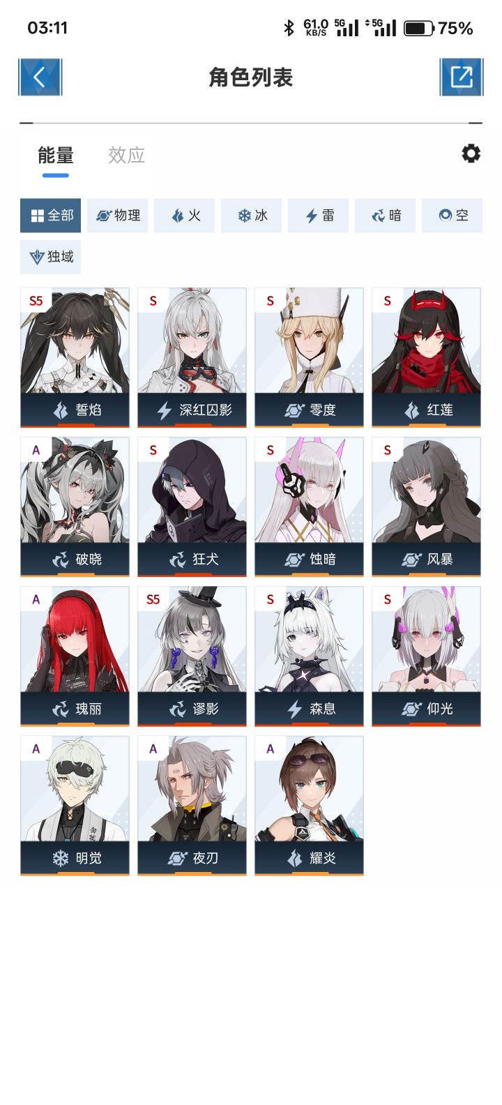 目前只养了一个“誓焰和一个深红。刚才还打算培养一个冰系和一物理系的,但是目前不知道培养哪个会好点。誓焰的话准备花些时间升到SS。新手S级角色和武器都还没有选。