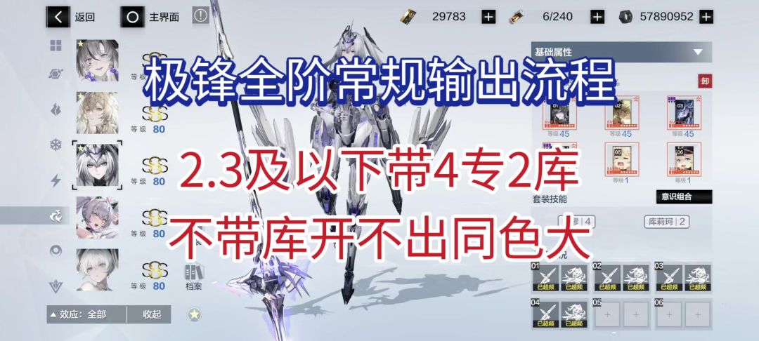 极锋不是很适合单c,再加上谬影送全套,大伙最好还是极锋和谬影双人轮切。稍微讲解几个点:①极锋的三色球:其实就是不同的攻击模式而已,为了方便变身后开大,一般是以蓝色模式为主(给的大招能量最多)。②轻量链接常态下的三格核心条,每消耗一个球就加一格。以视频中操作为例,第一次点蓝球,消耗一个白球,就加了1格核心条。第二次是蓝球连段,消耗两个白球,那就再加2格核心条。③灰度链接三格核心条后,