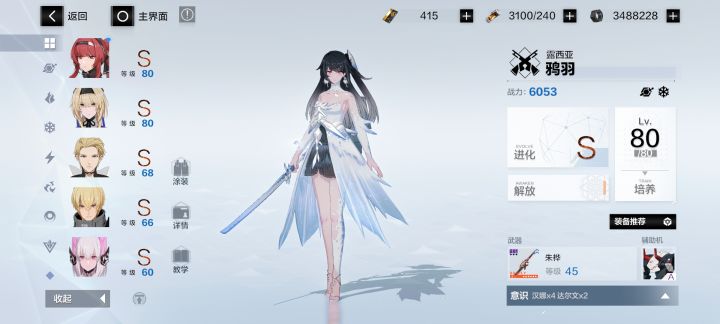 我的主要角色看上图,选谁好配队啊,有一个凛冽和露娜
