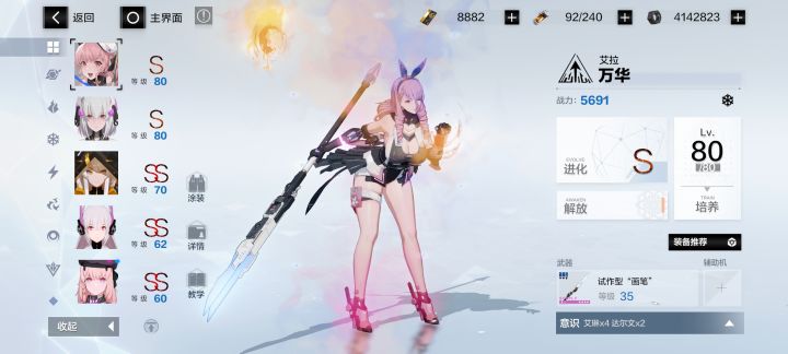 其实这游戏抽卡非常简单,别的游戏要分析一堆这游戏一句话的事。简单说,如果有检定的话(普池自选那个)选雷毛,就那个漏的比较多拿太刀那个,叫深红囚影(这游戏因为新出角色比较媚宅所以女角色一般露肉多的比较强)黑卡和角色票囤着,角色票抽一个叫拉米亚的,就是那个人鱼,也是比较暴露的。暗系大c。然后剩下的票可以给那俩抽个专武,然后保证到周年庆手里有60抽。宿舍两个能换的角色都换了,暂时不用抽专武。后
