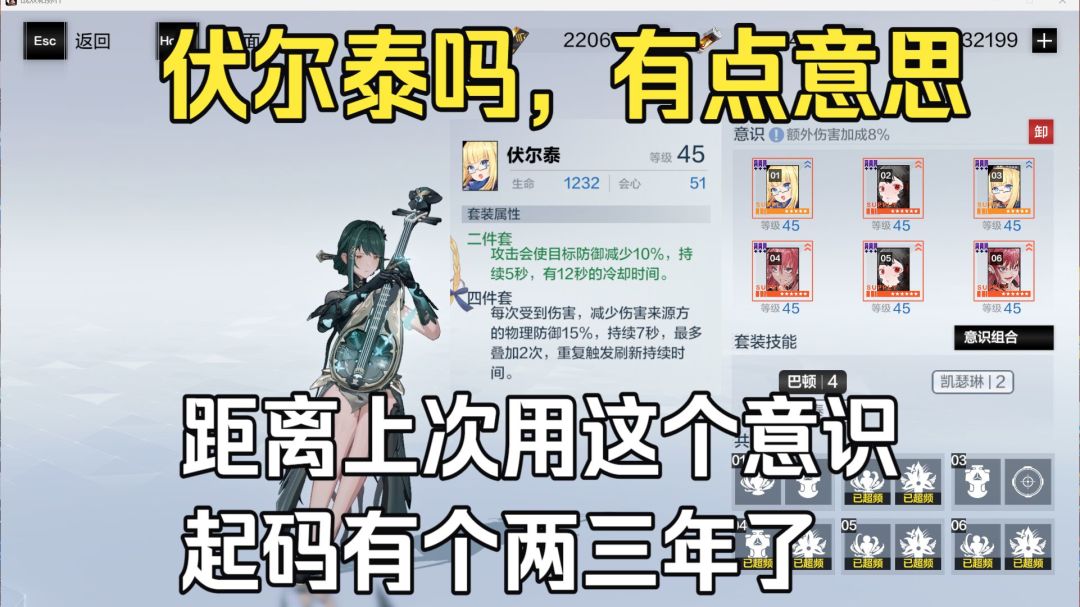 在保持回音物理通用意识不变的前提(4专4达) 骡子临时拉了套巴顿,我想了下含英巴顿得留,物抗减上 灯笼和减抗之间毫不犹豫选择了减抗,于是伏尔泰来了 真的,起码两三年没碰过这个意识了,有点意思 全3物理,这队纯真3.0的,2机,溢出了起码几管随便提