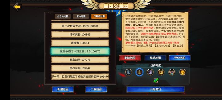 由于地图评论区只能评论,不能答复,所以希望有问题的小伙伴们可以去我的【魔兽争霸之冰封王座】专题贴进行反馈,我也可以根据你游玩的实际情况,指导你该如何快速变的更加厉害。一般对于地图相对了解的伙伴,70回合是可以直接一刀秒杀对面5千血的天灾2阶段英雄的,甚至5万血的瘟疫骑士一回合都是可以秒杀的,游戏内容非常丰富,希望你可以多多探索,可玩性是绝对没有任何问题的。【地图征集】地图名:魔兽争霸之冰封王座,