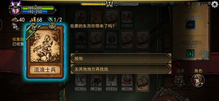 发现了一个bug第二关19层,士兵要求收集士兵勋章,一直不提交可以一直刷19层。同时在19层使用《虚假的食物》后,后续不提交进入新的19层,虚假食物的buff还在,可以一直刷食物