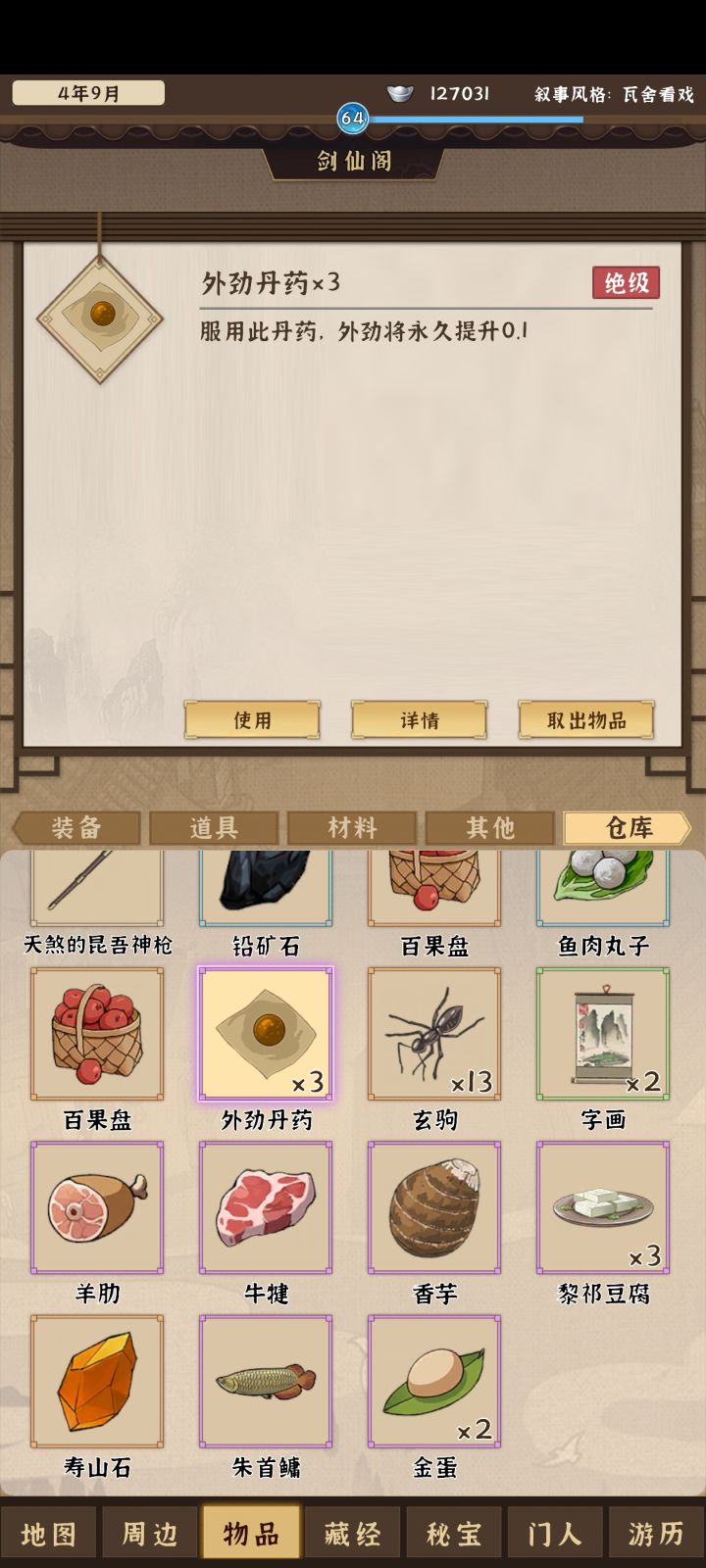 又一个恶心的bug,显示提交了6个外劲丹药,但是仓库里只有3个