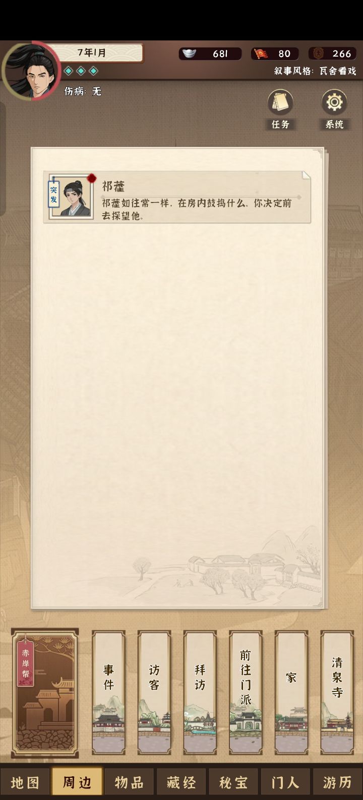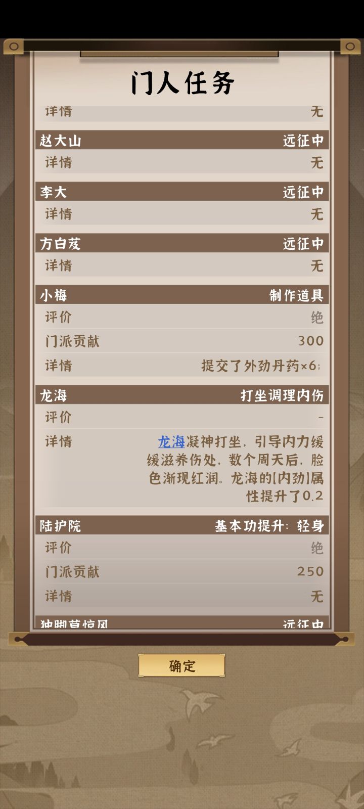 这个任务瞬间消失,点一下都不用跳过就没了。还有陆护院的任务找完人留字条,回来之后就没有触发了。