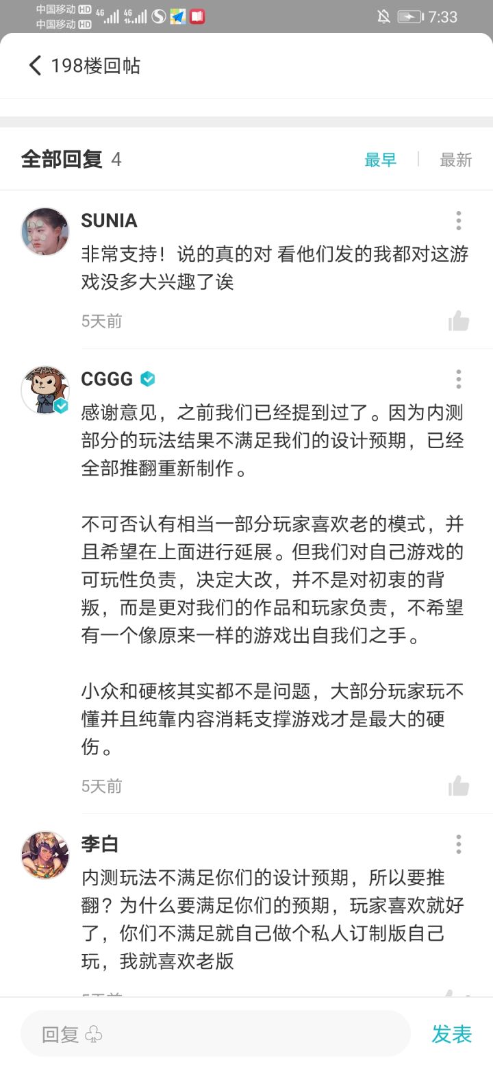 真的是太强了,测试完了玩家满意你们自己不满意,之后千万别说自已要负责还努力过了,结果玩家不买账,游戏是玩家玩的不是你们自己玩的,没明白测试了什么,就好像厨子炒了盘菜客人说好吃,然后厨子拿了回去又放酱油又放奶酪,客人不喜欢还要说自己是在对自己的作品负责,你们做游戏是为了自己还是为了玩家