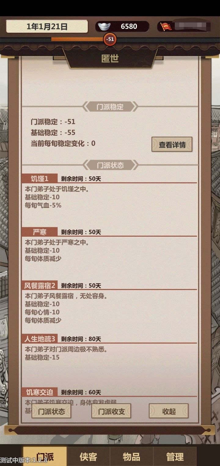大佬求指点,感激不尽。各位大佬能帮我看看吗?玩了第二次了,感觉自己的智商有点不够用了,第一次就是行侠的时候门内第一自相残杀玩毁了,这次又差不多,刚行侠一次就有好多问题出现,充公的道路是干嘛用的?怎么弄到?都不敢玩了,我怕我又给毁了。