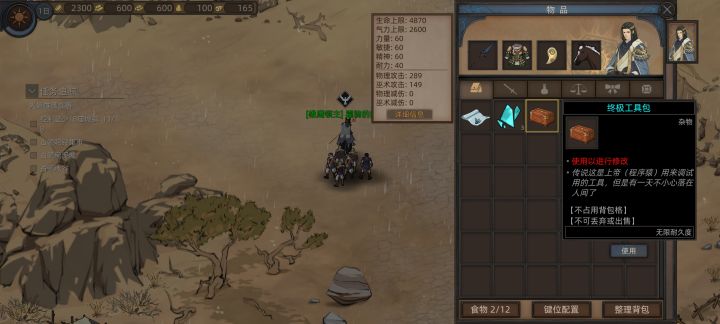 第二步,如果已经打了一个周目的就不用管这步了,直接往下看。如果没打或者不懂一周目是啥玩意的,那就先开一个新游戏,进入游戏后,打开背包,打开终极工具包(图1),点击“编辑指令表”(图2),然后按上面那些格式输入(图3):
