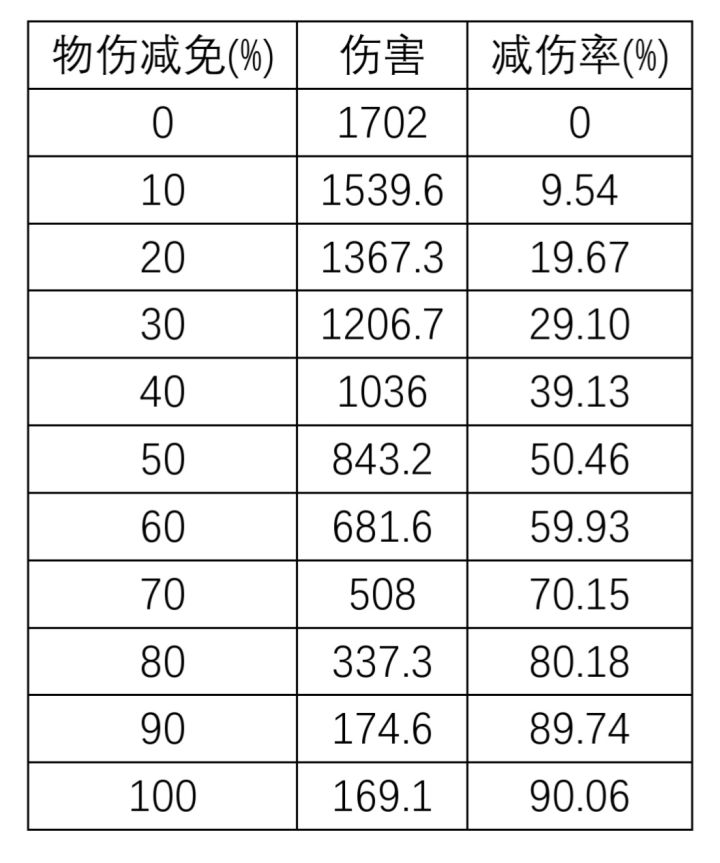 发现一个有意思的现象,本来我以为这游戏减伤算法和其他游戏相似,即:减伤随防御值的变化是按防御/防御+常数。但是刚刚测试了一下0到100%物理伤害减免,分别取连续命中的攻击,排除暴击,数据如图根据图片,结论如下:物伤减免在0到90%之间,增加的减伤率为线性增加,且可认为90%物伤减免所对应的减伤率为极限,极限减伤率为90%。游戏前期物伤减免所带来收益或许不明显,但是后期物伤减免越高,收益越大,比如0到10%物伤减免的收益相当于增加11.1%生命值,但是80%到90%物伤减免的收益相当于增加100%的生命值。因此,游戏内尽量堆伤害减免到90%,但不必超过90%。不喜欢看贴吧,不知道有没有更精确的结果,只测试了物理伤害减免,巫术伤害或许相同,但也需要验证。上述结果为12周目普通难度红石谷郊外剧情的火魔人,全部结果都没有穿护甲。