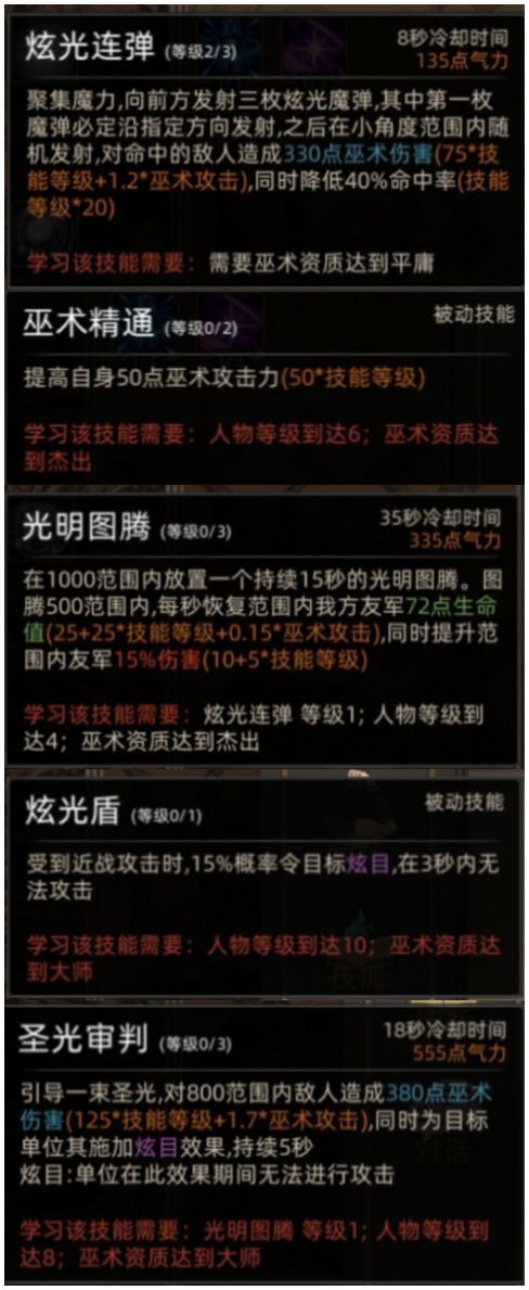 G———————————————公孙巴兰武器:刀巫术资质:平庸礼物喜好:特殊装备、秘宝技能树:嗜血刀术——冲锋——护卫——其他——公孙妍武器:刀巫术资质:大师礼物喜好:文学物品技能树:野火刀术——战技——体术——其他——公孙弥武器:弓巫术资质:杰出礼物喜好:神秘物品、装饰品技能树:皇家箭术——体术——淬毒技巧——其他——格罗瓦兹武器:琴巫