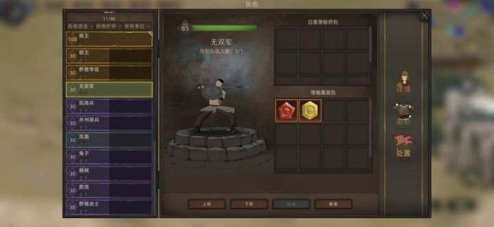 此外还要有动物,有对应的驯兽技能,打败后能收做宠物或杀了当军粮,可以给新人作为过度兵种。