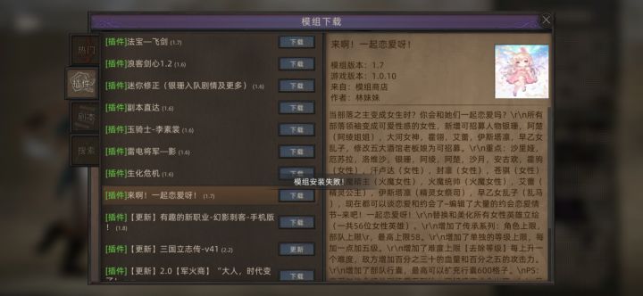 这mod怎么一直安装失败,我看你们客服一两个月前就说在修了,怎么现在还没修好