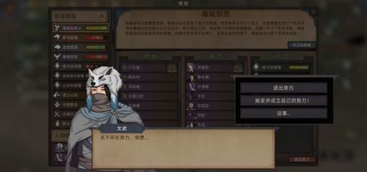 想问一下退出势力和叛变成立势力的区别在哪,就是说部落会怎么对你,以及部落分配的城镇会不会收回之类的