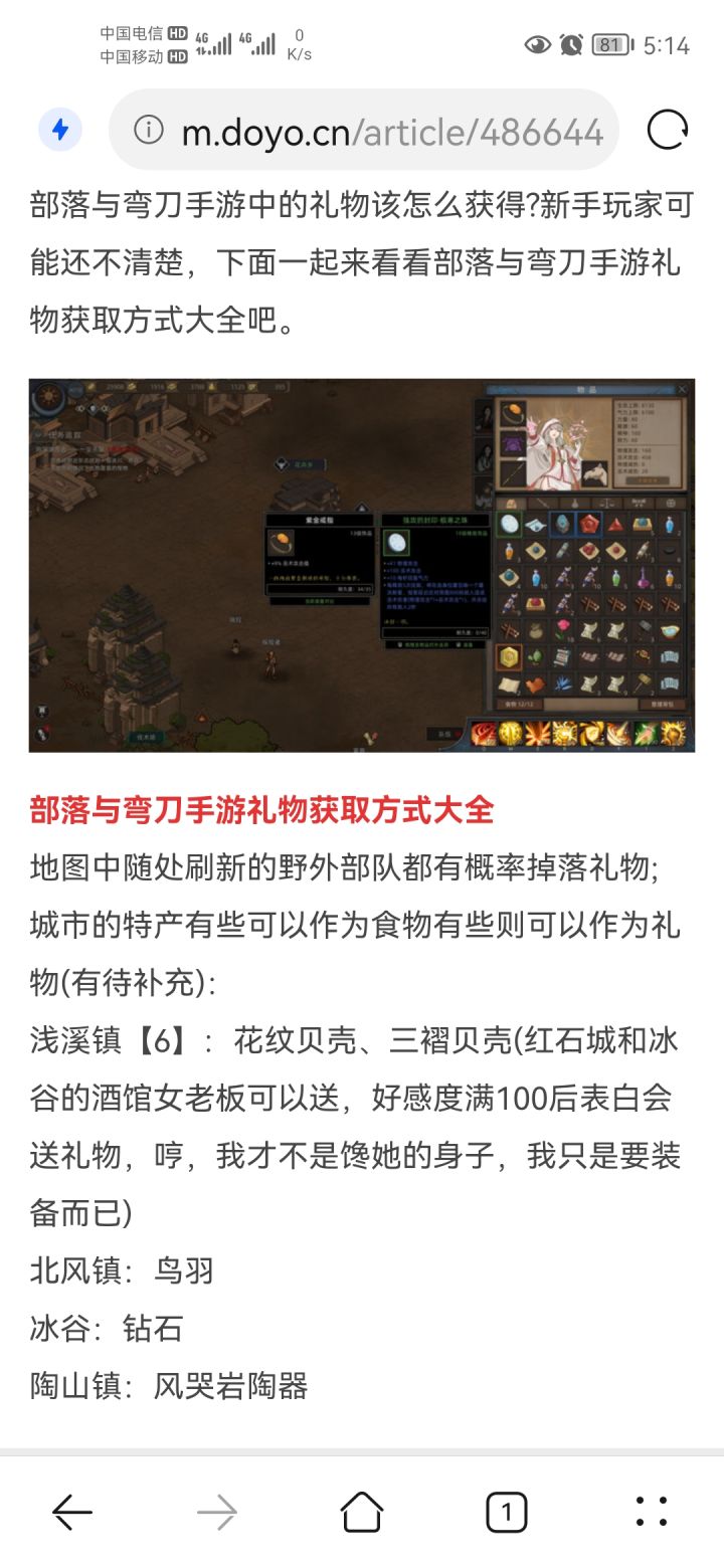 问一下各位大佬关于手机版《部落与弯刀》的问题……我前几天在网上搜索关于礼物的问题,然后看到金银器、贝壳、瓷器可以作为礼物送人,然后我就在游戏里收集了一点,打算作为礼物(尤其是贝壳可以送给风颖,太划算了)但是到了游戏里发现并不能送……是不是现在手游的版本还不能把这些商品作为礼物送出去啊ps:问一下战斗类礼物去哪里刷比较多,送安红砂
