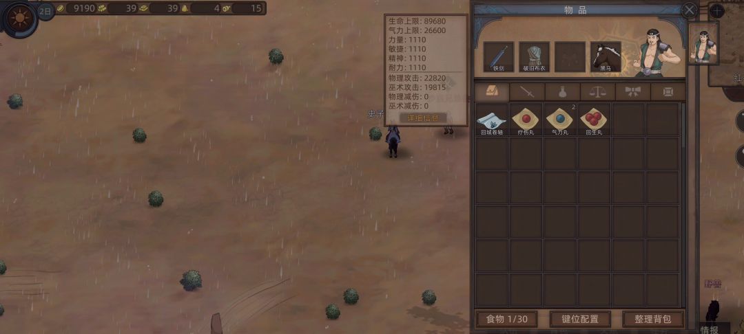 还是那句话跑商没必要特意去跑,顺路的时候带一下 视频这个是我手机上的,周目比较高,所以效果明显 之后我电脑端的是5周目,钱虽然不多,但是在38天的时候已经有3万的乌塔了,仇恨-100的只要7500乌塔就可以取消通缉,可以说大半个地图我随便跑